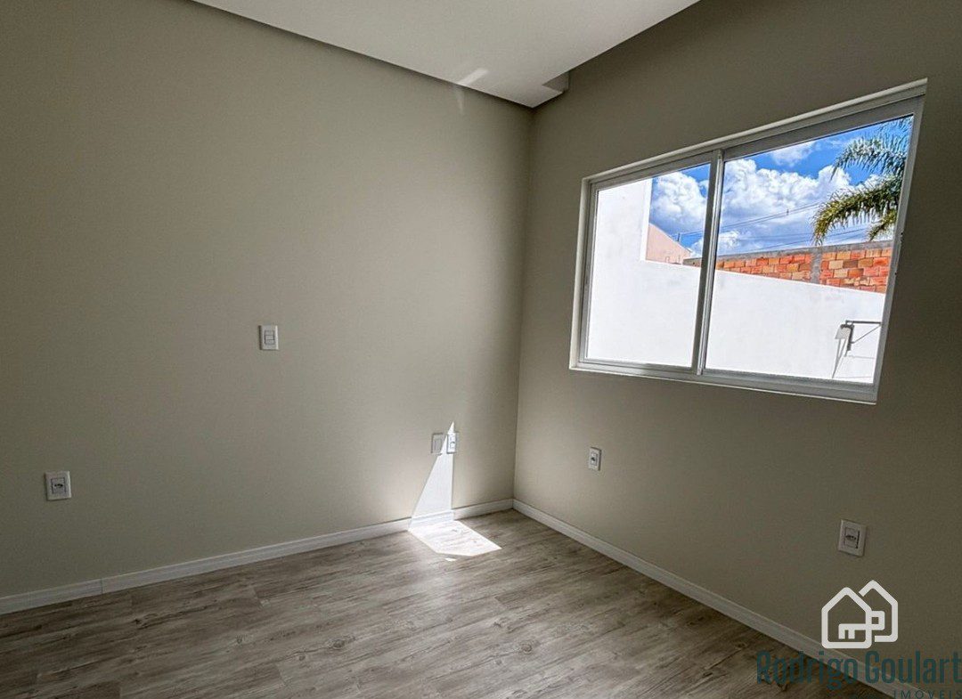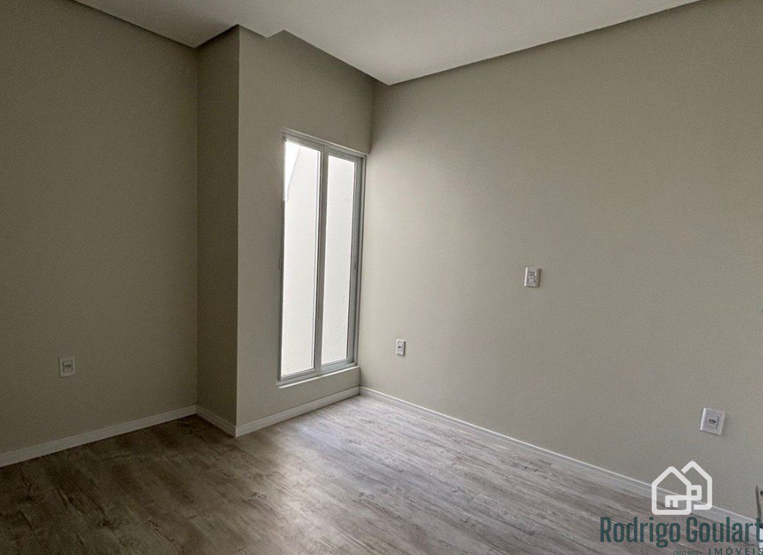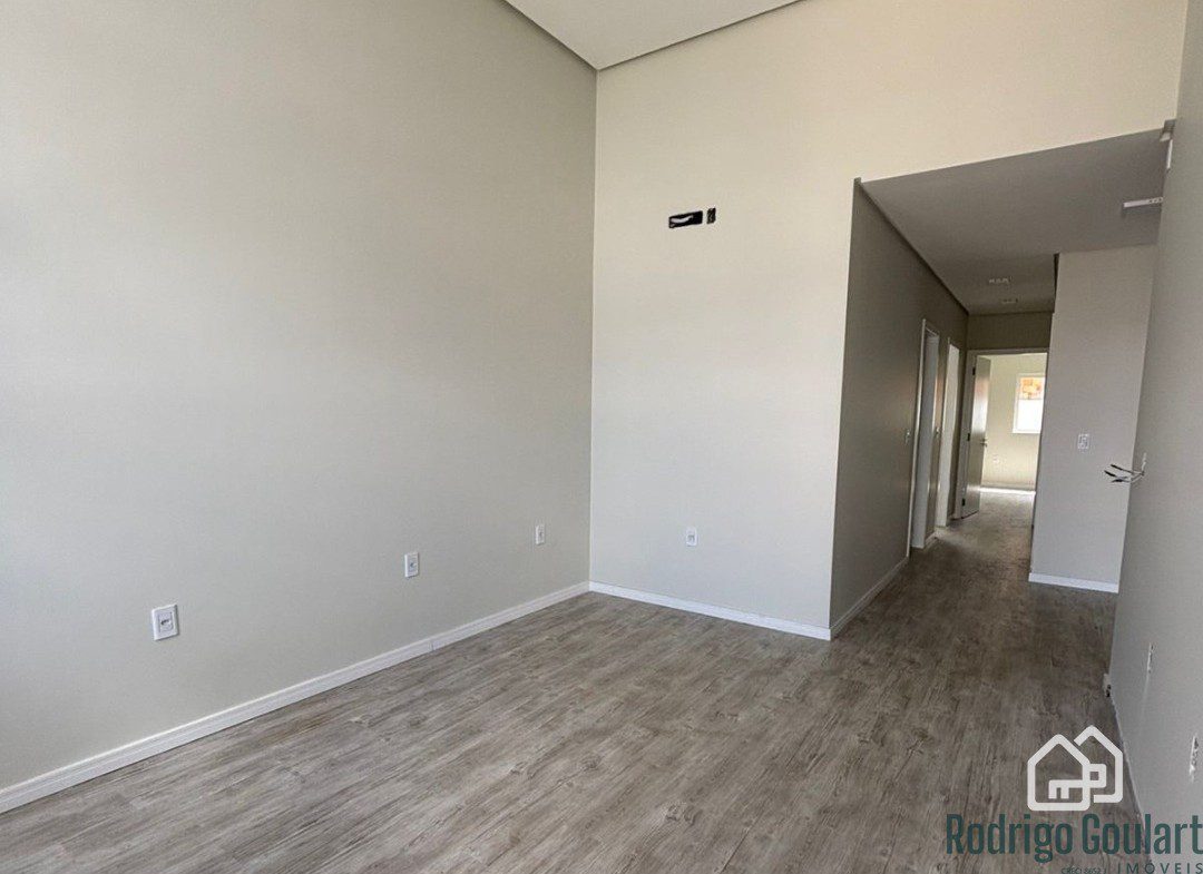 Fachada moderna, forro em gesso, revestimentos em porcelanato e piso vinílico.